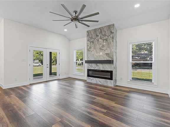 Double car garageElectric fireplaceHuge islandClassic brick exteriorNew sodPrimary suiteFrench doors