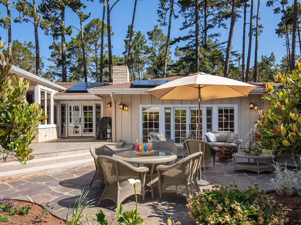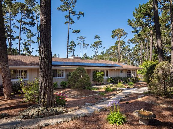Wonderful opportunity to own a fully remodeled home done with exquisite details in Pebble Beach close to all of the amenities available within Del Monte Forest: hiking and equestrian trails, beach access, iconic Pebble Beach hotels, restaurants, wine bars and multiple golf courses. Classic architecture graces this popular one story design with high end finishes that include a gourmet kitchen with commercial grade appliances, limestone counters, vaulted wood timbered ceiling, wet bar and charming Carmel stone fireplace. Entertain easily for gatherings with fully equipped wet bar that includes SubZero wine refrigerator, ice maker, and sink. Hickory plank floors add to the cozy ambiance of the home. Need to office at home? There are two offices in the residence each with beautiful views of the gardens with stone patio, fully fenced and gated for privacy. Generator and solar included. This home is truly an oasis of calm in one of the most sought after communities in the country.