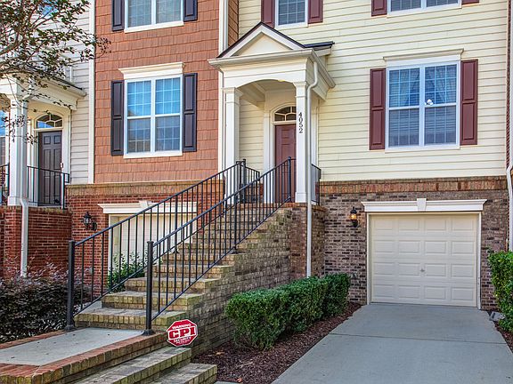 Prime location in Creekside at Tryon just steps from Cary Crossroads, shopping, dining, and everyday conveniences. This well-maintained three-story townhome offers thoughtful updates and a functional layout. Hardwood floors extend through the main and third levels. The family room features a gas fireplace and opens to a spacious kitchen with stainless steel appliances, tons of storage, an island, and a pantry. The eat-in dining area leads to a deck ideal for grilling or relaxing with private wooded views. Upstairs are two generous bedroom suites, including a primary with a fully renovated bath. The walk-out basement includes a third bedroom or flex space, and the garage provides an oversized storage nook perfect for tools or a workshop. Convenient to NC State, I-40, RTP, and WakeMed—this home combines comfort, convenience, and location. Walk to Harris Teeter, Ruckus Pizza or shopping!