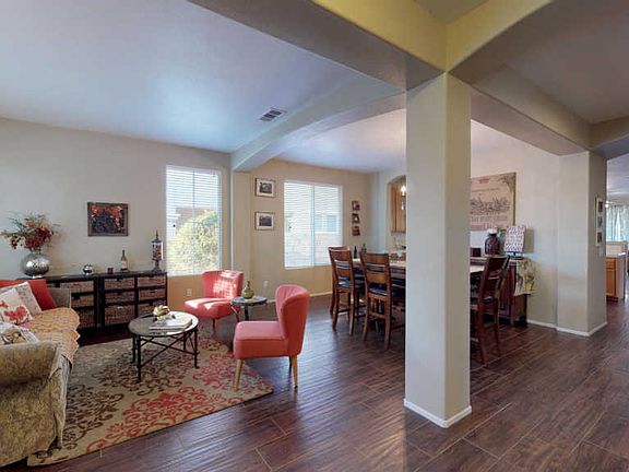 Welcome to perfection as you gaze upon a fully landscaped and well manicured green lawn. Entranced by luxury & prestige as you enter to find this intellectually designed floor plan gleaming with natural light. Enter upon dark brown wood look tile planks that gently kiss bright white baseboards. Elegant earth tones have been maintained over the walls while upgraded 6 panel doors adorn them. The living room is blessed with arches & architecture overflowing into the dining room featuring custom chandelier. The first bedroom can be an office and features a double door entry, new carpet & perfect color schemes. The kitchen is massive & has cabinets galore, recessed lights, upgraded white appliances & like new white tile counters. Continue to find an additional dining area with custom light fixture and the comforting family room. A custom fireplace with tile backsplash & stone like mantle adds to the center of the room. The magnificence of this property continues through out the home.
