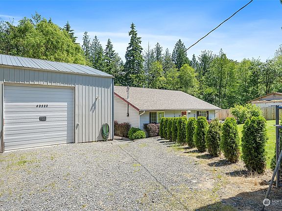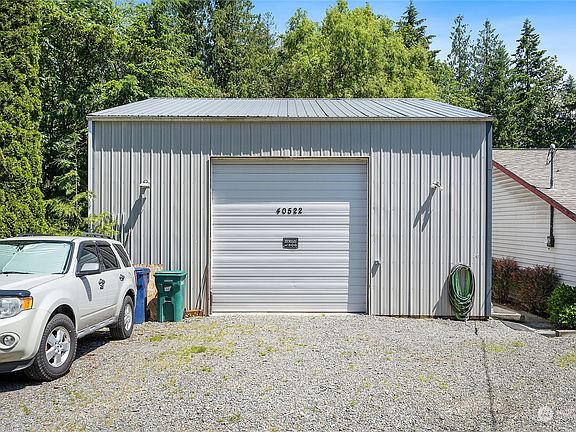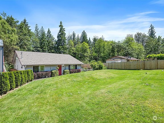 Tranquility calls at this creekside sanctuary just outside Enumclaw on Newaukum Creek. Retreat to your secluded property spanning half an acre, complete with garden space and ample room for all!This cozy home boasts two bedrooms, a bonus room, 1.75 baths, and kitchen complete with all appliances.A generous custom-built 1,000 sq ft shop featuring log details can house all your toys, projects, and more, with the potential to be converted into an Accessory Dwelling Unit (ADU)! The home boasts a newly installed 30-year roof, a fresh fence, privacy bushes, and comes with a $5,000 flooring credit for your own design customization. A large handcrafted fire pit and spacious deck in backyard make it an ideal spot for entertaining guests!
