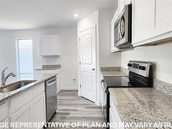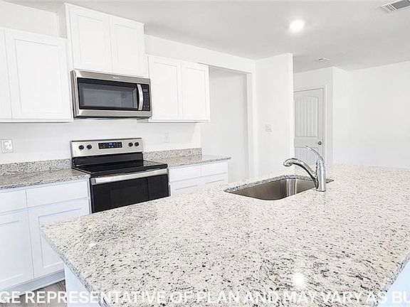 This open-concept five-bedroom, three-bathroom, two-car garage home is for anyone. The main living area is open and spacious, with a living room, dining room, and kitchen. The kitchen features stainless steel equipment, a large island, and ample counter space. The expansive primary suite, boasts a walk-in closet and an en suite. The remaining four bedrooms each have walk-in closets and share the use of the other two bathrooms. The house also offers a patio with sufficient space for gathering