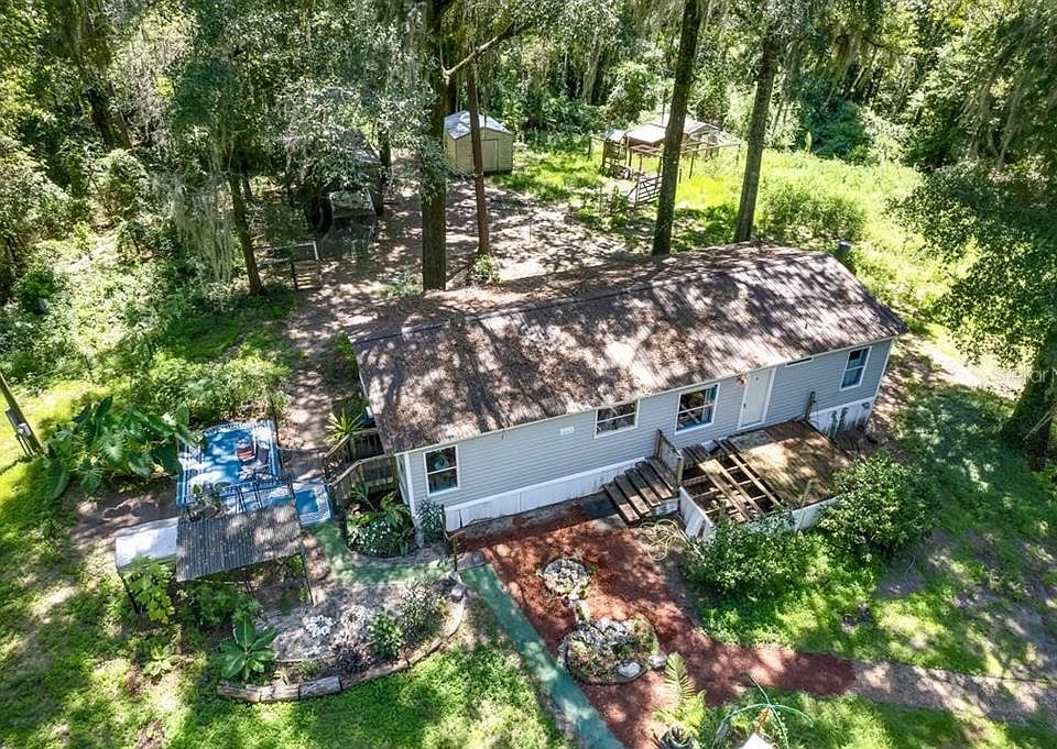Enjoy peace and quiet on this private 5.15 acres of country living. The move in ready 3 bedroom 2 bath doublewide mobile home has an open floor plan, metal roof, and tons of potential! Located off a paved road the property has large shade trees, two storage sheds. No deed restrictions and no HOA. Located 10 minutes to I75. End your searching! Make an appointment to see this special place quick!