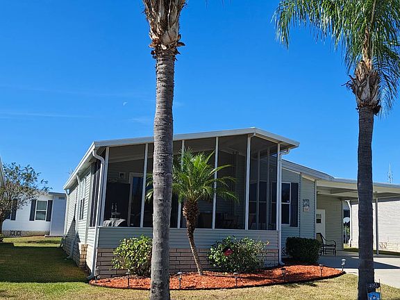 If you are looking for an affordable 2nd home or just downsizing to a permanent one, here it is! This home has been well cared for with many updated features including flooring, appliances (3 door Fridge), roof (2017) and A/C unit (2022). The very attractive furnishings will remain. There is a large screened in front lanai perfect for enjoying the wonderful Florida sunshine. The home also features a double wide driveway which can easily accommodate two cars and a golf cart. Southport Springs Golf and Country Club (SPS) is a PREMIER 55+ community with superb amenities including a beautiful Club House with ballroom/stage for banquets and dances, fitness center, card room, a restaurant/tavern with a fully stocked bar. Activities include golf at the 18-hole golf course, tennis, pickleball, horseshoes, bocce, shuffleboard, power walking, bingo, potlucks, pool tables, and line dancing. You might prefer a dip in the heated swimming pool or relax in the two hot tubs. SPS has over 500 homes and is pet-friendly with a place to park your RV or trailer. SPS is less than two miles from shopping, medical facilities, dining, and houses of worship. Only 45 minutes from downtown Tampa and the Tampa International Airport. There are many nearby attractions like Busch Gardens, many beaches along the Gulf of Mexico. Go see the Tampa Bay Buccaneers, TB Lightning, TB Rays, Orlando Magic, as well as spring training with the New York Yankees. Family fun is also readily available. The excitement of Orlando's theme parks includes Walt Disney World, Epcot Center, Universal Studios, and SeaWorld which are just 60 miles away. There is truly something for everyone in this friendly and wonderfully maintained Florida community.