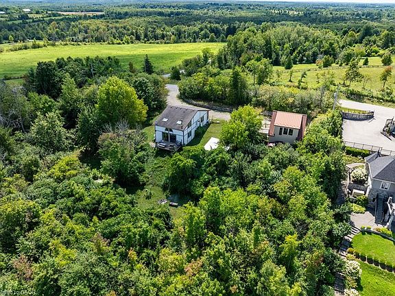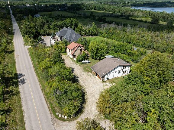 UNINTERRUPTED WATER VIEWS AWAIT YOU! Nestled atop one of the highest points in Puslinch and just minutes from the charming Campbellville equestrian community, this unique opportunity invites you to either build your dream home (initial drawings and survey available)or reimagine the existing structure on a generous 1-acre lot (225 x 194 feet). Experience a beautiful nature sanctuary with stunning views of Mountsberg Reservoir, which spans 472 acres outside your door. Each morning, wake up to vibrant sunrises illuminating your backyard. The recently constructed garage measures 24x28 ft and is fully insulated, featuring three layers of high-density foam beneath engineered wood siding. It is framed with sturdy 2x6 lumber, topped with a durable steel roof, and equipped with a 100 Amp electrical panel and an EV charger.With buried water and sewer lines running to the garage foundation, the upper level can easily be transformed into a workshop or studio apartment, enhancing the investment! This incredible setting isn't just a building lot; its also the perfect starter home for those dreaming of a country lifestyle that could become your family retreat. Currently, the property boasts a loft bungalow with an abundance of windows, a spacious great room, a luxurious kitchen ready for culinary adventures, and sleeping quarters with both a main floor bedroom and a whimsical loft bedroom. Theres also a wood stove, heat pumps, and AC. You'll also love the charming cordwood garden shed. Conveniently located close toHighway 401, commuting to Guelph, Burlington, Hamilton, and the GTA is easy. Experiences awaits nearby, including a boat launch where you can fish or paddle in your kayak or non-motorized boats. Additionally, you'll discover a variety of beautiful hiking trails and excellent fishing opportunities in the area, all surrounded by breathtaking scenery. Start planning your visit and be first in line for your new lifestyle and investment today!