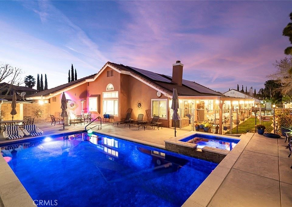 Welcome to Your Dream Home! Upgrades Galore! This Luxurious Single Story 4-Bedroom, 3-Bathroom Home is Situated on a Large Lot Offering Over 15,000 sqft. & Comes Loaded with Top-Tier Upgrades & Luxurious Features Designed for Modern Living & Entertaining. Welcome to Outdoor Living at Its Best. The Backyard Offers a Gorgeous Custom Glass Bead Bottom Finish Pool & Spa with a Solar Heating System with Low-Voltage Automatic Lighting Surrounding the Pool, & a Smart System that Connects to Bluetooth. The Backyard also Features a Full Length 60x14 Custom Covered Patio that is Perfect for Gatherings, a Custom Fire Pit for those Cozy Evenings, Block Walls, a Small Orchard Filled with Fruit Trees & Luscious Manicured Green Grass. This Beautiful Home is Energy-Efficient Offering Reliable Owned/Paid Solar System for Sustainable Living, also Features an Owned/Paid 22KW Generac Generator with an Automatic Switch, Capable of Running the Entire Home & Pool. This Home Offers Brand-New AC/Furnace & Ducting, NEW Energy-Efficient Windows & Sliding Doors. Interior Highlights Offer an Open Concept Kitchen with Granite Countertops & Upgraded Stainless Steel Appliances. Spacious Family Room with a Custom Dual Fireplace & Custom Mantles. Formal Dining Room & Formal Living Room Offer Large Picture Windows. Engineered Wood Flooring Throughout & Upgraded Plantation White Finish Shutters. The Master Suite Featuring a Walk-In Closet with Closet Organizers, Dual Sinks, a Separate Bathtub & a Custom-Tiled Shower. Two Guest Bathrooms for Your Guests to Enjoy the Comfort of this Home. Three Spacious Guest Bedrooms with Large Closets. Indoor Laundry Room, for Convenience, & an Attached 3 Car Garage for a Total of 6 Parking Spaces. Additional Features Include All-New Plumbing for Peace of Mind, Fresh Exterior Paint for a Modern Look, All Appliances Included & so Much More! This Home Offers the Perfect Blend of Luxury, Functionality, & Sustainability.