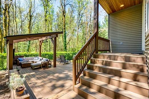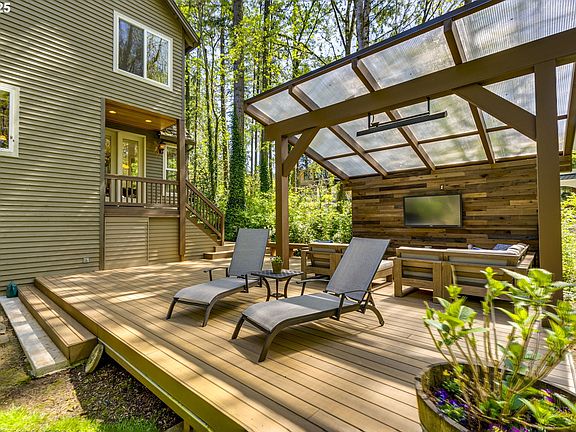 Lake Oswego's Westridge neighborhood: private setting, backing to greenspace, gorgeous for entertaining: a perfect combination of luxury & warmth. This 5 BR, 3.5 BA beauty has an ideal footprint & flow in a rare setting offering privacy, peaceful views - all minutes from town. With 4,017 sq feet of refined living space, the home features freshly refinished Brazilian Cherry hardwood floors, new designer carpet on the main level & fresh interior paint throughout. Upon entering, you're welcomed by a bright & beautiful foyer, dedicated office space w/ built-ins, & open living room w/fireplace, flowing seamlessly into the formal dining room—perfect for hosting gatherings. Throughout the main living areas,large windows offer sweeping views of the lush trees & natural surroundings, creating a serene atmosphere while bringing the beauty of nature inside. The gorgeous kitchen opens to a casual dining nook & relaxed family room w/ built-ins and a second fireplace, creating a comfortable space for everyday living. There's also a convenient powder room on the main floor. Upstairs, you'll find five bedrooms laid out perfectly. The spacious primary suite is a true retreat, offering a versatile sitting area or office nook that looks out onto the peaceful treetop views. The primary also features a spa-like ensuite bathroom & a walk-in closet. Two of the bedrooms share a Jack-and-Jill bathroom, while the fourth bedroom has easy access to a full bath. The fifth bedroom can be just that, or a guest suite; a media room, playroom, or...? The large upstairs laundry room adds extra convenience. Outside, find the newly added, breathtaking covered deck & entertainment area, to enjoy w friends & family amidst a lush natural backdrop. Surrounded by trees, this outdoor space is the perfect retreat for every season, offering privacy & true connection to nature. This home blends luxury, comfort & nature’s beauty, making it a true gem in Lake Oswego.