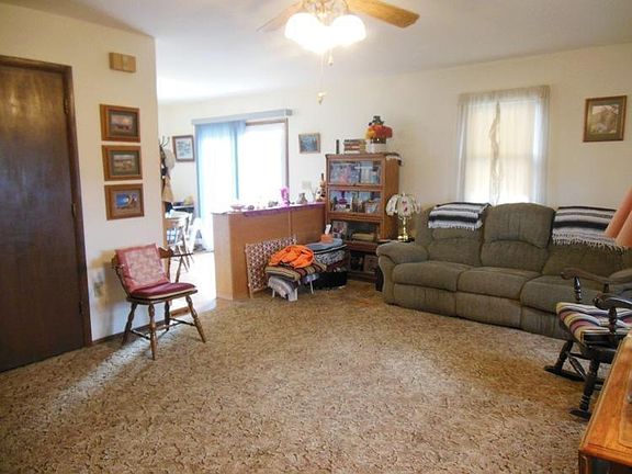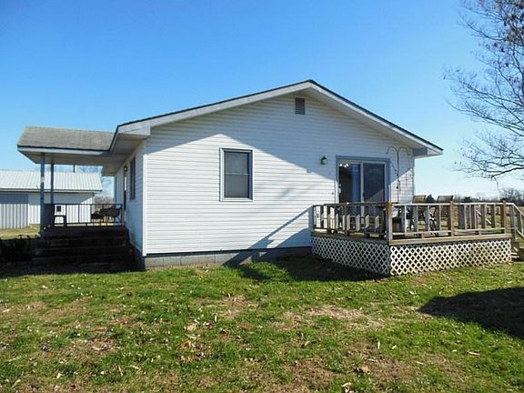 Nice 2 bedroom ranch on a pretty 15 acre farm. Roomy 13x19 living room, 9x10 dining area, 2 good-sized bedrooms, carpet and laminate flooring, 8x10 covered front porch, 10x12 side deck. There's also an older house used as a storage building that has an attached 2 car garage. 40x40 horse barn with pipe corral. Awesome 32x56 metal shop building with concrete floors, wood stove, 220 electric and 2 drive-in doors. Storm cellar. Nice pond stocked with catfish and bluegill. 3 raised bed gardens, one with spring strawberries and the other with an asparagus patch. County road frontage, but close to town and just a half mile off the highway.