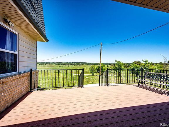 ASK AGENT ABOUT SELLER CREDIT FOR LOWER INTEREST RATE! Enjoy room to roam, privacy, and panoramic views from this beautifully updated 4-bed, 4-bath home on 10.75 acres with mountain vistas from Pikes Peak to Longs Peak. Located just minutes from Parker, Elizabeth, and I-70, this move-in-ready property offers rural serenity with easy access to shopping and dining. The main level features a sunken living room with a gas fireplace, flowing into the dining area with sliders to the oversized deck, and a gorgeous remodeled kitchen. Your new kitchen is simply stunning with quartz counters, soft-close maple cabinets, an oversized island, upgraded appliances, a gas cooktop, and three(!) electric ovens. Multiple decks and patios provide ideal outdoor living spaces, including a private deck off the spacious primary suite, which also features a walk-in closet and remodeled en-suite. A second large family room on the main level and an additional living space in the partially finished basement provide ample space for all your needs. The finished basement, featuring a new half bath and framed-in additional bedrooms, offers flexibility for future expansion or accommodating guests. Enjoy thoughtful upgrades throughout: UV windows and patio doors, a newer septic tank (2022), whole-house water filter and softener with R.O. system in the kitchen, whole-house Generac generator, and an in-ground 1,000-gallon propane tank. The newer roof (2022) features impact-resistant shingles, and gutters were upgraded to French drains. Outside, a fenced pasture, oversized parking pad, garden planters, retaining walls, and a graded build pad ready for your custom barn/shop provide space for livestock, hobbies, or recreation. With 1 acre-foot of adjudicated water rights, fiber internet, county-maintained roads, USDA loan eligibility, and no HOA, this property offers that true Colorado lifestyle, ready for your animals, your toys, and your custom vision to come to life!