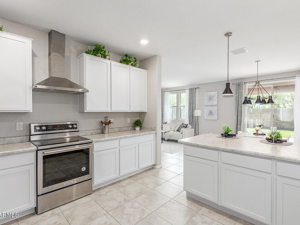 Move in ready home for sale at Smith Farms - Desert Passage in Maricopa Arizona. Still feeling brand new, this home is modern, low maintenance & features 3 bedrooms, 2.5 baths with a spacious loft for a total of 1945 square feet. Step inside to find a bright, open-concept floor plan with a sizable living area & a modern kitchen. There is ample space in the loft so you can be creative as you desire. The primary suite contains a vast walk-in closet & the primary restroom has a separate tub & shower & dual sinks. Neutral paint and tile throughout. All appliances convey. The community of Smith Farms - Desert Passage features a community pool, basketball & volleyball courts, baseball field, soccer field, tot lots and walking paths with great views. Close retail, shopping and dining.