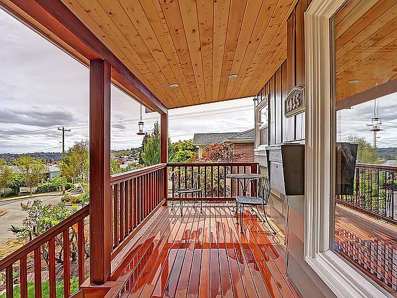 Wonderful home in Belvidere neighborhood! Cuddle up by art deco fireplace. Big picture window with views of Mt. Rainier & Cascade Range. Beautiful kitchen opens to light-filled dining & living area with gleaming hardwood floors, coved ceilings. New gas line and furnace. New Brazilian hardwood porch, fresh paint, new carpet. Kid’s dream playhouse in terraced backyard with large deck and garden. Garage & pkg off alley. This house blends the conveniences of a newer home with period charm.