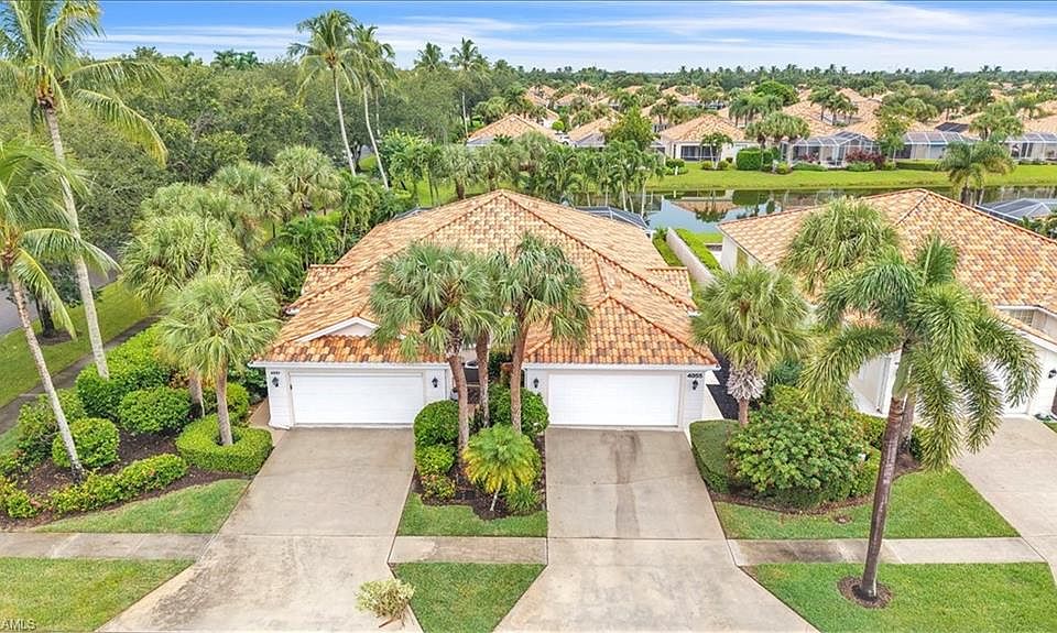 Paradise found in this quiet, middle of the community location! The Perfect villa with a private pool, 2 car garage, so well maintained, and priced right! This Capri villa provides nightly sunsets from the sparkling private pool and covered lanai. Ideally located away from traffic noise. Featuring; 2 bedrooms - each with its own bath and walk-in closet, extra large great room concept with very open and flexible space, the clay tile roof was replaced in 2018, the a/c unit is from 2018, 2 car garage, pool was resurfaced, kitchen granite, plantation shutters on sliding glass doors, and this home is clean and neutral. Village Walk offers North Naples convenience and wonderful amenities like tennis, pickleball, on-site restaurant, gym with lap pool, 2 resort pools, miles of paved walking paths and Venician style bridges, and only 5 miles to the beach! Outstanding long-lasting value!!