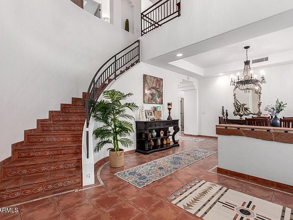 Welcome to Red Mountain Country Club Estates! This custom home sits on one of the largest lots in the community, offering unparalleled space and luxury. From the moment you step into the impressive entryway, you'll be captivated by the tile flooring and the striking stairway.The open floor plan is designed for both comfort and entertaining, featuring a formal dining room & spacious kitchen that boasts a granite island with seating for eight, a cozy eat-in nook and seamless flow into the living and great room. A SubZero refrigerator anchors the kitchen, complemented by 2 walk-in pantries, a gas cooktop, and built-in oven. The panoramic Nano door effortlessly connects the indoors to the outdoors, making alfresco dining and entertaining a breeze. The outdoor space is an entertainer's dream.. featuring an automated heated pool and spa, a 5 hole chipper and green, built in BBQ and plenty of extra parking. The Luxor automated landscape and whole-house lighting system allow you to create the perfect ambiance, day or night. The main level includes a generously sized bedroom with its own private entrance from a serene courtyard-ideal as a guest or in-law suite. An additional office or second bedroom is also located on the main floor, providing flexibility for your needs. The oversized laundry room features built-in cabinetry and granite counters, adding functionality and convenience. Upstairs, the luxurious master suite awaits, complete with a custom gas fireplace, his-and-hers closets, a walk-in shower, a soaking tub, and a private walkout balcony that offers breathtaking mountain views. Two additional bedrooms are located upstairs, one with its own ensuite bathroom, ensuring comfort and privacy for all. The 3 car garage includes multiple overhead storage And a versatile hobby room, fully insulated and equipped with air conditioning, making it ideal for a workshop or creative space. Don't miss this opportunity to own a stunning home in one of the most sought-after communities.
