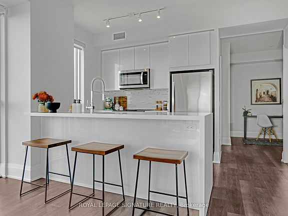 This stunning 2-bedroom plus den, 2-bathroom corner unit offers an open-concept layout with breathtaking views, high ceilings and TWO PARKING spots. Easily one of the most upgraded units in the building with high end finishes top to bottom. The large wrap-around terrace enhances the living space, making it perfect for relaxation and entertaining. The open-concept kitchen boasts quartz countertops, modern backsplash, upgraded extended cabinetry, a waterfall island and stainless steel appliances. The entire unit has hardwood flooring throughout including the living/dining area features which walks out to a private wrap-around terrace. The spacious primary bedroom includes a 4-piece ensuite which has been upgraded with a glass enclosed shower, modern tiles and vanity. The den is a great size and perfect for that professional who works from home or anyone who needs a home office. Located conveniently near parks, schools, a library, transit, and the Square One Shopping Centre, this unit is conveniently situated for modern living near Mississauga Celebration Square. Close to highways 401 and 403, Sheridan College, the YMCA, and the Central Library.