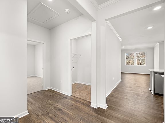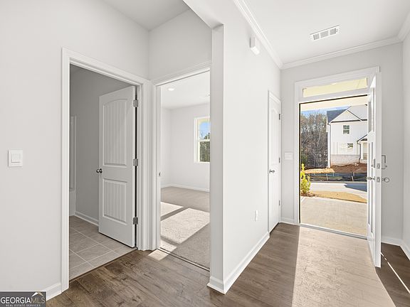 Boat slip included - Falcon Landing is home to 4055 Peregrine Way, a new-construction home at Lake Lanier in Gainesville, GA! The lakeside location of this community gives residents the opportunity to enjoy the community dock, and all Lake Lanier has to offer. This 4 bedroom, 2 bathroom Cali ranch floorplan home also boasts a golf cart garage, to easily get to and from the lake. As you make your way off of the front porch, a long foyer with a coat closet greets you. Along the hallway you find 2 additional bedrooms and a full bathroom with tile. Both of these front rooms offer ample space with walk-in closets. Down the hallway further to the left is the third additional bedroom, the laundry room, and access to the 2-car garage. Stepping into the main living area, homeowners will enjoy the open layout. The updated kitchen is situated with quartz countertops, exquisitely crafted kitchen cabinets, stainless-steel appliances and more. A dining area sits right off the kitchen and living room with easy access to the covered back porch. Get cozy with a good book or movie, in front of the corner slate fireplace with wood mantle. All of the main living areas boast durable RevWood flooring, for the active households. To complete this home, is the spacious primary suite. Tucked in the back let corner off the living room, homeowners can enjoy rest and relaxation. The primary suite offers a large walk-in closet, dual quartz vanity, and separate soaking tub and tiled walk-in shower. If 4055 Peregrine Way sounds like a dream come true, give us a call at Falcon Landing to make Lake Lanier your home!