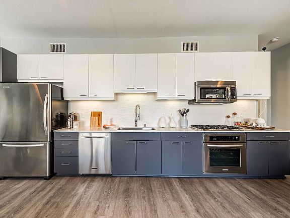 Stainless steel appliancesHardwood flooringWalk in closetsQuartz kitchen countertopsAir conditioning