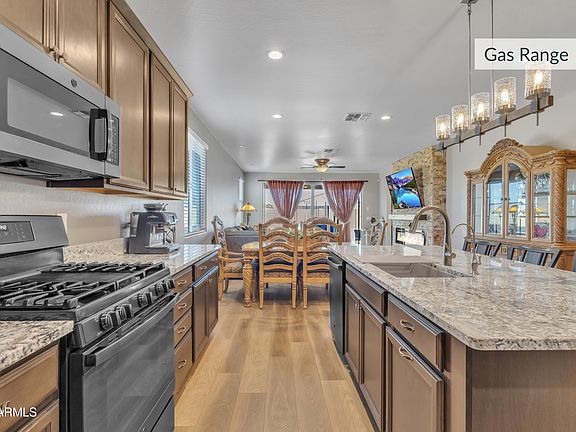 The kitchen truly is the HEART of the home w/GRANITE counters, GAS range, SOFT-CLOSE cabinets/drawers, & a HUGE ISLAND that flows right into the living/dining areas—perfect for family hangouts or ENTERTAINING friends. The cozy FIREPLACE & sleek finishes give a polished INVITING feel. **The Bedrooms come in pairs of 2 w/shared baths. Think guests, HOME OFFICE, playroom...all great options. **The PRIMARY suite is your RETREAT--gorgeous counters + SOFT CLOSE cabinetry, dual sinks, a spacious shower, and ample walk-in closet. Garage has clean EPOXY coating, overhead storage racks, & BUILT-IN CABINETS for all your stuff. **Here's the best part--the backyard is a blank canvas. Whether you DREAM of a pool, outdoor kitchen, or play space for the kids, this oversized lot is ready for YOUR VISION!