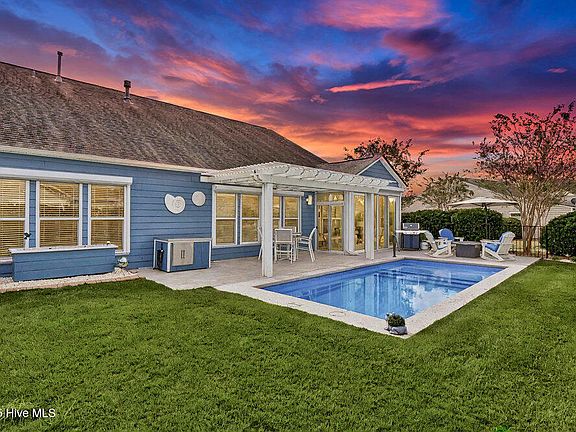 This ''Dunwoody'' is truly a one of a kind offering the only private in-ground saltwater poolin the entire amenity rich Del Webb community of RiverLights. The open-concept living space features upgraded details throughout including a custom fireplace, premium cabinetry, crown molding, and doors. The Gourmet Kitchen has been beautifully remodeled with open shelving, a porcelain farmhouse sink, and stainless steel, Kitchen-Aid appliances including a brand-new gas cook top (installed 9/25). A microwave/oven wall unit and large pantry, custom shelving complete this dream kitchen.The home features 3 bedrooms and 3 full baths all on one level, along with a transomed French-door Flex Room. Designer lighting, ceiling fans, window blinds, and engineered hardwood floors run throughout the main living areas, with tile in the bathrooms. The Primary En-suite bath offers a spa-like experience with a ''Zero Entry'' walk-in rain-head shower featuring multiple body sprays and a custom closet system. The second en-suite includes an electric fireplace and an upgraded shower for added style. The Drop-Zone/Laundry Room with cabinetry & an upgraded sink connects to the epoxied garage floor & attached golf cart garage, providing the perfect space for your cart or workshop.A sunroom plus a spacious three-season room overlook your private backyard oasis, where entertaining or relaxing with views of the shimmering saltwater pool year-round, make this home's indoor-outdoor flow unmatched. Situated on a premium lakefront lot, showcases enhanced landscaping, custom curbing plant beds, and an integrated sprinkler system, all maintained by the HOA for easy living.The Del Webb community offers resort-style amenities: indoor saltwater pool, outdoor pool, hot tub, fire pit, pickle-ball, tennis, and boccie ball courts, plus numerous clubs and activities. Take in the 3+ mile walking / biking path around the lake or take a short drive or bike ride to Marina Village on the Cape Fear River. and an integrated sprinkler system all maintained by the HOA for easy living. The Del Webb at RiverLights community offers unparalleled resort-style amenities: indoor saltwater pool, outdoor pool, hot tub, fire pit, pickleball, tennis, and boccie ball courts, plus numerous clubs and activities. Take in the 3+ mile walking and biking path around.
