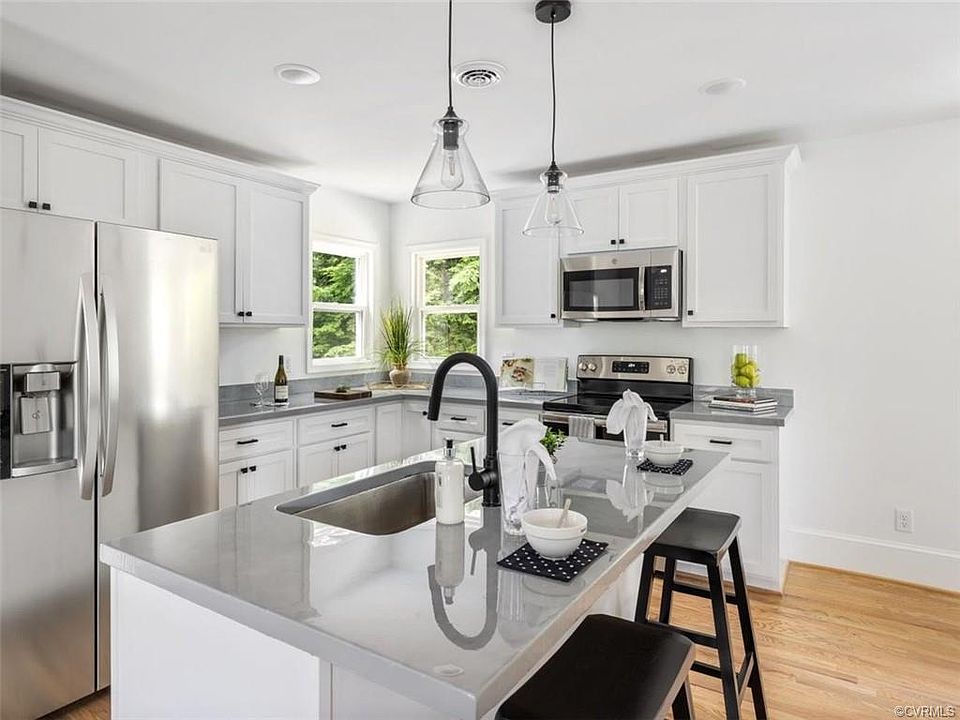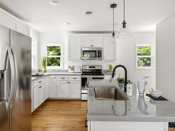 COMPLETELY RENOVATED BRICK RANCH SITUATED ON OVER AN ACRE!**Rare Opportunity for Single-Story Living!**This 3 Bedroom, 2 Full Bathroom Home Features: NEW ROOF, NEW HEAT PUMP, NEW HOT WATER HEATER, NEW WINDOWS, Beautiful Hardwoods & NEW LVT Flooring, NEW Exterior & Interior Paint, NEW White Shaker-Style Soft-Close Kitchen Cabinets, NEW Concrete Countertops with Epoxy Finish, NEW Stainless Steel Appliances, Island with NEW Undermount Stainless Steel Sink, NEW Matte Black Faucet, NEW Light Fixtures Throughout, Dining Area with a Gorgeous NEW Black Chandelier, Bright Living Room with Triple Window, Painted White Brick Fireplace & Coat Closet at Front Door, NEW Vanities, Completely Renovated Full Hall Bath, & Primary Suite with Brand NEW Private Full Bathroom, NEW Cubbies & Large Desk in Mudroom, NEW Storage Cabinet in Laundry Room, Walk Out of the Office/Mudroom with Vaulted Ceiling & Skylights, into the OVERSIZED 2-CAR GARAGE, and out to the Spacious Private Backyard!