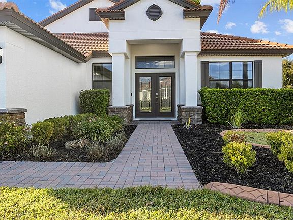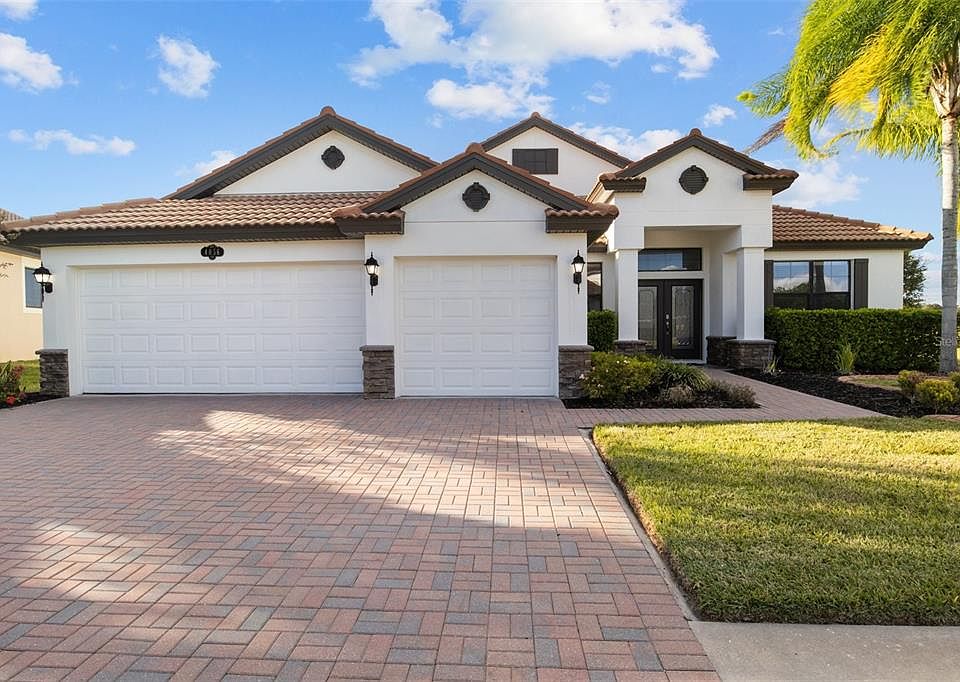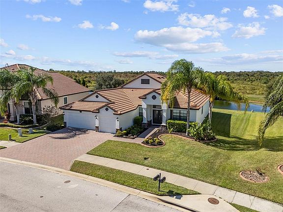One or more photo(s) has been virtually staged. Experience serene lakefront living at 4056 Sunset Lake Drive, nestled in the resort-style gated community of TerraLargo. This beautifully designed single-story home offers 4 bedrooms and 3 bathrooms with effortless comfort and style. Inside discover bright, open living spaces with high ceilings and expansive picture windows that frame breathtaking lake views from nearly every room. The thoughtful split floor plan provides privacy for guests and hosts alike, while the spacious primary suite offers tranquil water views and a spa-like bathroom retreat. The gourmet kitchen flows seamlessly into the living and dining areas, perfect for entertaining or enjoying quiet evenings at home. Outside the covered patio overlooking the glistening lake — an ideal spot for morning coffee or sunset gatherings. Located just minutes from I-4, commuting to Tampa or Orlando is a breeze. Nearby Lakeside Village offers premier shopping, dining, and entertainment, with favorites like Abuelo’s Mexican Restaurant and Grillsmith Lakeland close by. Daily errands are simple with Publix and ALDI just around the corner. Residents of TerraLargo enjoy access to world-class amenities, including a resort-style pool and spa, fitness center, playground, tennis and basketball courts, clubhouse, and scenic walking trails around the lakes. This property also includes a rare VA assumable mortgage, giving eligible buyers the opportunity to take advantage of the seller’s exceptionally low interest rate. Plus, the owned solar panels offer incredible energy efficiency and long-term savings — the perfect combination of luxury living and smart investing. Buyer to cover the difference between the loan balance and purchase price at closing.