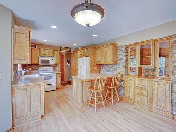 4 Bedroom, 3 bathroom, 3 car garage rambler on over an acre lot with 150 feet of lakeshore. Beautifully finished lower level, hardwood floors, vaulted ceilings, gas fireplace, master suite with whirlpool tub in master bath, main floor laundry. Gorgeous view of lake and sunsets. Large deck with hot tub. Nice wooded lot location on a cul-de-sac.