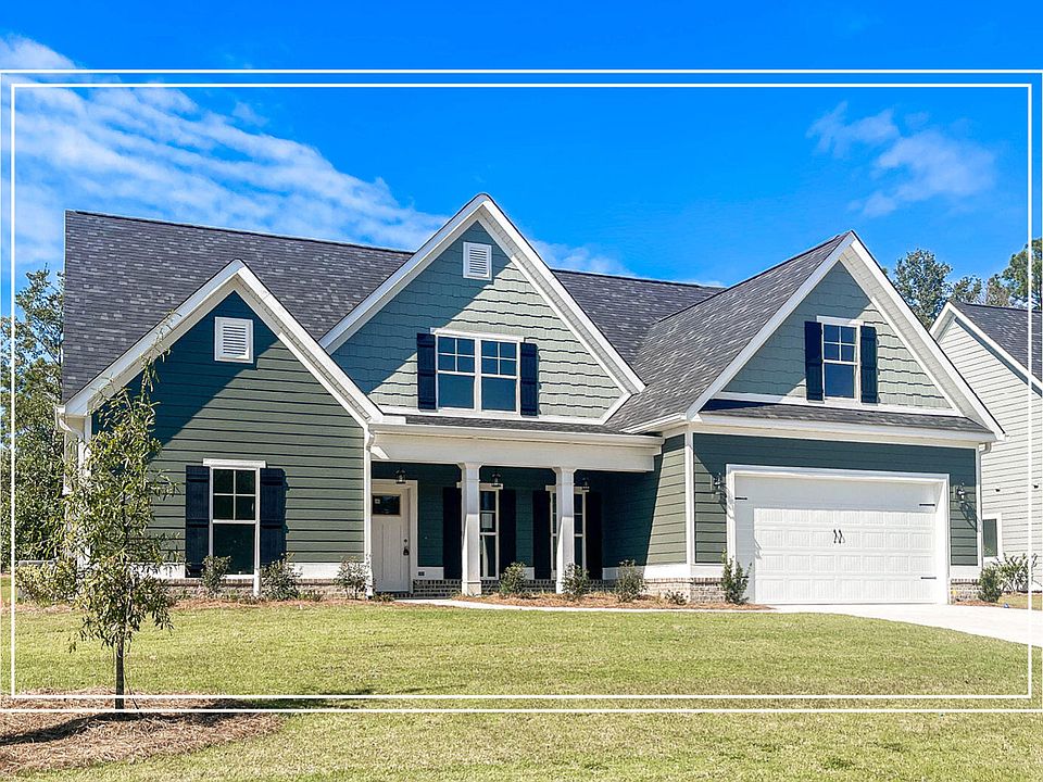Introducing The Lakes! Take advantage of a generous **$6,000** towards your closing costs when you work with preferred lender Motto Mortgage Simplified! This 4-bedroom, 2.5-bath residence offers modern comforts and charming touches throughout! Enjoy a welcoming rocking chair front porch and an inviting foyer that opens into a formal dining room with a coffered ceiling! The living room boasts a vaulted ceiling, cozy fireplace, and added recessed lighting, creating the perfect space for relaxation and entertaining! The gourmet kitchen is a chef's dream, complete with a large island with bar seating, gas cooktop, wall oven and microwave, dishwasher, granite countertops, tiled backsplash, a walk-in pantry, under-cabinet lighting, farmhouse sink, and a convenient garbage disposal! The luxurious owner's suite on the main level features a tray ceiling, a spacious bathroom with double sink vanity, soaking tub, tiled shower, water closet, a large walk-in closet and access to the laundry room! Upstairs, you'll find three additional bedrooms (one with vaulted ceiling) and a nearby full bathroom! Step out and enjoy the covered back porch perfect for outdoor gatherings with permanent green space behind! Additional features include a mudbench coming in from the two-car garage and a half bath for guests! This home also has radiant barrier roofing for energy efficiency, and a tankless water heater! The beautifully landscaped property is equipped with a sprinkler system that taps into the neighborhood water supply, ensuring a low water bill! As a resident of Lakes & Streams, you'll enjoy a wealth of amenities, including expansive green spaces, serene lakes, picturesque fountains, miles of walking trails, a beach area, gated RV & Boat Parking, and more! With convenient access to downtown Augusta, I-20, SRS, and Fort Gordon, this home perfectly balances comfort and accessibility! If this home doesn't quite meet your needs, explore the other available lots and floor plans within the community!