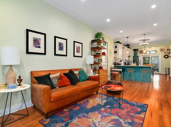 Welcome to this beautiful frame workers cottage style home located in Humboldt Park. This home features many updates and modern amenities that make it an ideal living space for families, professionals, house hackers and investors alike. One of the main highlights of this home is the updated kitchen which is a chef's dream, featuring two-tone cabinets with ample storage space, granite counters, a glass tile backsplash, and stainless steel appliances. There is also a convenient breakfast bar with seating for three and an island with a butcher block countertop. French doors lead to a deck with a pergola, creating the perfect space for outdoor dining and entertaining. The beautiful engineered hardwood floors throughout the main level offer both durability and elegance. This home underwent a full gut rehab in 2017, including new windows, a new roof, and a new water heater. In 2021, both the first and second-floor bathrooms were updated with new tiles, vanities, toilets, and fixtures. There are also newer modern lighting fixtures and recessed lighting throughout the home. The washer and dryer are only two years old, making laundry a breeze. The main level has a bedroom, a full bathroom, a kitchen, a living room, and a dining room (which was converted from a second bedroom). The second level has a primary suite with a large bedroom, a full bathroom, and a den/office. The fully finished basement features high ceilings and an exterior exit, making it perfect for an in-law suite or rental space. It has one bedroom, a new kitchenette with a gas line for future addition of a stove, a laundry room, and a family/recreation room. Located across the street from Nobel Dual Language Charter Elementary, this home is also near West Park Steam Academy, Humboldt Park, the 606 trail and new cafe Tasa Coffee Roasters. There are also many new developments planned for the area, including the conversion of historic Pioneer Bank to a Community Hub featuring entrepreneurial incubator space, a Latino cultural center, and office space. Hop on the 72 North bus to North Ave Beach or the 65 Grand bus to Navy Pier and downtown. This home is situated on a large lot with a beautiful floral garden and mature trees. There is also a two-car garage with a party door, making it perfect for hosting gatherings with friends and family. Don't miss out on the opportunity to own this stunning home. Schedule a viewing today! A preferred lender offers a reduced interest rate for this listing.