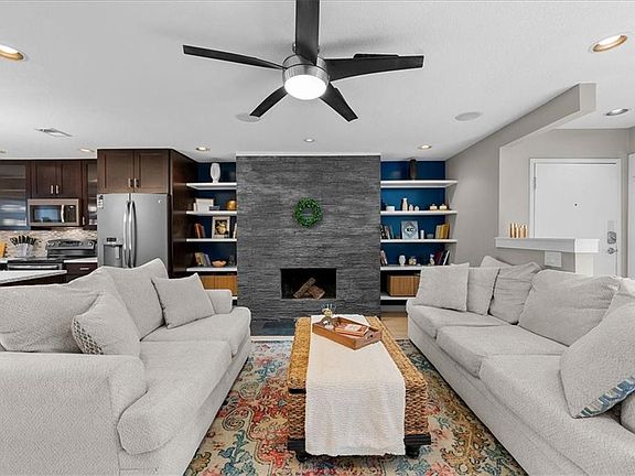 Welcome to Inglenook Plaza – a true showstopper! This updated, meticulously designed condo is a rare gem you won’t want to miss. As you step inside, you’ll be wowed by the stunning luxury vinyl plank flooring, setting the stage for high-end finishes throughout. The grand fireplace, complete with custom built-ins, serves as the perfect focal point & overlooks a fully custom KraftMaid kitchen. This unit offers two spacious bedrooms, two beautifully appointed bathrooms & a private, secured parking space for convenience. Enjoy sipping your morning coffee on the porch or unwinding on the patio—there’s no shortage of outdoor space. Key features include recessed lighting throughout, built-in speakers in the family room for an immersive TV experience & a chef’s dream kitchen with custom KraftMaid cabinetry, quartz countertops, soft-close drawers/cabinets, thoughtful built-in storage, including dedicated spaces for sheet pans, trash bins & a wine fridge. The kitchen also features under-cabinet lighting & all stainless steel appliances. The primary en-suite offers convenient laundry & two closets for maximum storage. The updated hall bathroom boasts gorgeous custom tile work & quartz countertops, while the second bedroom offers plush carpeting. Ceiling fans ensure comfort & the kitchen lighting adds elegance. During the summer, you’ll love the private pool oasis, plus access to an exercise room, clubhouse/theater, communal laundry, a grill area & two dog stations for your furry friends. Other amenities include off-street gated parking, CCTV with five cameras, a secure entry, Google Fiber readiness, a Nest smart home thermostat & additional hallway storage. Located just one block from the Kansas City Streetcar, this condo offers unparalleled convenience, placing you minutes from the Country Club Plaza, Vibrant Westport, Crossroads & the River Market. Don’t miss the chance to own in the heart of Midtown—this gem won’t last long!