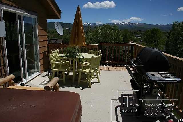 Charming, delightful and well designed! This 3 bedroom, 3 baths home boasts panoramic 180 degree views of the ski mountain and surrounds, a well maintained massive lush backyard and loads of mature trees on this property. A lucky buyer will enjoy a fully remodeled interior with new items including granite counter tops, carpet, wood floors, kitchen appliances, deck rails, bathroom counters and faucets, garage doors, trim, interior hand rails and paint. The lower level is set up with bar and entertainment areas and the deck is big enough for outdoor dining, hot tub and BBQ. A perfect home for entertaining and outright good living!