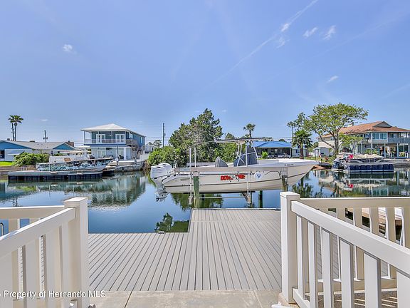 Live the Gulf Coast lifestyle in this DIRECT GULF ACCESS 4-bedroom, 3-bath Key West-style waterfront home with assumable primary flood insurance at just 810 per year plus homeowner's and wind primary insurance estimated at only 1,992 per year. With NO fixed bridges or locks, you'll be boating in the open Gulf within minutes, and the property includes a 2018 10k boat lift with composite dock and deck, fish cleaning station, shore power, and water for effortless days on the water. The spacious design offers soaring 17' vaulted ceilings, a wall of windows, and a 2017 remodeled kitchen with soft-close cabinets, granite counters, stainless appliances, and pantry, while the layout features 3 bedrooms and 2 baths upstairs plus a private 1 bedroom/1 bath guest quarters perfect for family, visitors, or rental income. Virtual Staging was done to give new owners an idea for Furniture & Decor placement. Investors will love that the neighborhood is short-term-rental friendly, while updates like a 2008 metal roof with 30+ years remaining according to 2024 4 Point Inspection, 2018 HVAC with 10-year warranty, 2019 electrical panel, 2021 water heater, and EV charger provide peace of mind. Outdoors, enjoy both open and covered entertaining spaces, lush tropical landscaping with banana, mango, avocado, pomegranate, and passion fruit, and unforgettable sunset gatherings. Just minutes from marinas, restaurants, tiki bars, coffee shops, the Weeki Wachee River, and the 16-Lake Preserve, this home combines lifestyle, value, and charm—every day feels like a vacation, so schedule your private tour today.