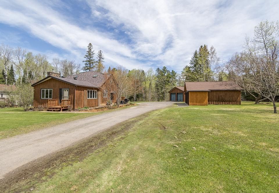 Convenient Country! Certified and tested close country 3 bedroom, 1 bathroom home with two 2 car garages. Enter this home from the deck into an open eat in kitchen with black appliances, fridge (2002) and stove (2002). The home features a formal dining room that is open to the expansive living room with a wood burning high efficiency fireplace insert (2002) and lined chimney, a large main floor master bedroom and bathroom, and 2 bedrooms upstairs. Outside you will find a gravel driveway, and two 2 car garages-one has electric heat! Newer steel roof (2011) to shed the snow and be the last roof you will ever need, paved driveway, 4 apple trees, and a perennial shrub garden. Dutchman Creek runs through property. Waterfront dimensions are estimated and not measured. Newer high quality vinyl windows (2003) from a local manufacturer. City sewer and city gas for convenience and low utility bills. No holding tank pumping and propane tanks to fill!