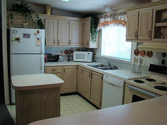 OUSLEY ESTATES~ Floridian Paradise. ONE Acre-On Captive Lake. Like new! 3 Bd/ 3 Ba/ Fully Furnished DWMH with carport and 29x30 DETACHED GARAGE. Formal Living and Dining. Florida room, Island kitchen, bkfast bar- opens to family room w/ fireplace. Two Master suites.1870 Sf under air- 2584 TLA. Dock, fish cleaning station, Beautiful Canary Island and Queen palms. Irrigation from lake. High elevation. SPITSHINED to Perfection!