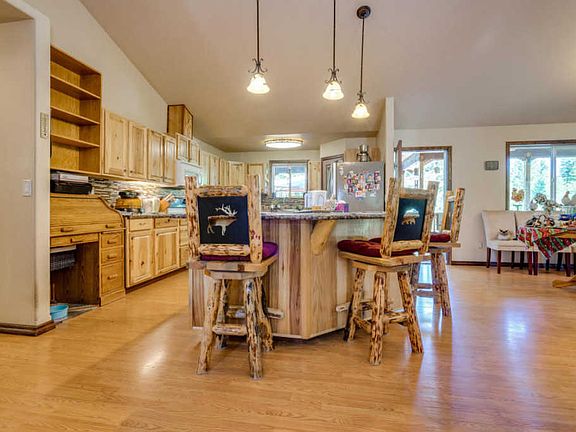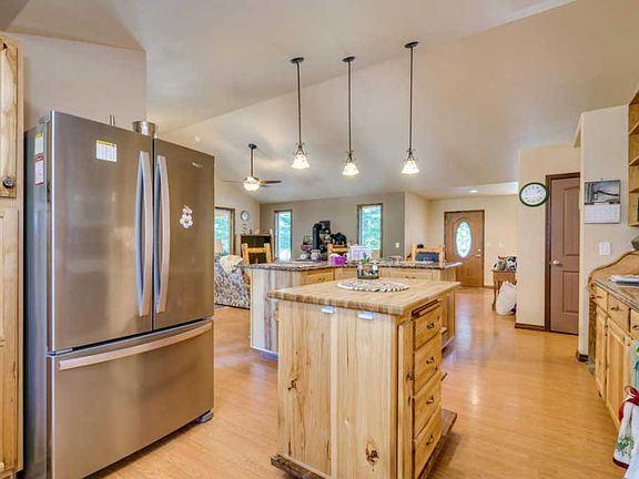 3 bedroom 2 1/2 Bath 3000 SqFt CUSTOM HOME built by Owner with to many upgrades too list them all. Amazing Kitchen with GRANITE counter tops, plenty of cabinet space, a large PANTRY & two ISLANDS. Cozy and comfortable Living room with a wood stove that has custom wood Mantle. Upstairs Master with custom TILE SHOWER large soaker tub and custom lighting. Wrap around porch and open deck with 1100 sqft of decking Then we go down stairs for two more bedrooms, a living room, craft room, storage room, and a PELLET stove for comfort. House has HEAT PUMP and AIR CONDITIONING, a water filtration system and 19 GPM well that is shared with back property. It has Quonset Hut SHOP with 220 power, has Covered RV PARKING with wood storage that could be easily completed to be fully enclosed.