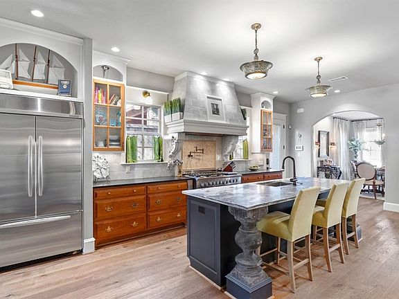 Fabulous custom home just blocks from Rivercrest Country Club. This 4 bedroom, 3.5 bathroom, 3 living area home features contemporary french flair. Enter with custom flooring into the large dining and formal living room. The kitchen is open to the den and features stainless steel appliances, commercial grade stove, marble countertops, wine fridge, walk-in pantry with butler's pantry. The den features a custom brick accent wall and floor to ceiling bookshelves. The first floor master bedroom is an oasis with walk-in custom closets. The spa inspired bathroom features double vanities, vessel tub and a large walk-in shower. Upstairs you will find a game room and 3 bedrooms. 2021-05-21
