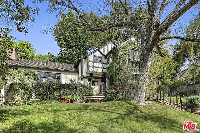 Classic and elegant, this English country home evokes an upscale feeling of bygone days. The gated hideaway is sited atop a rolling grassy lawn and private gardens. A timeless eat in kitchen with top of the line appliances is the heart of the house. The sunny breakfast nook has both city and treetop views. The sophisticated formal living room, complete with a library and wood burning fireplace opens to a serene inlaid brick courtyard. Perfect for dining al fresco. The cozy den has french doors that open to the secret garden. The dining room is warm and breezy. The second floor is host to warm master suite and 2 guest bedrooms. Perfect home for the holidays.