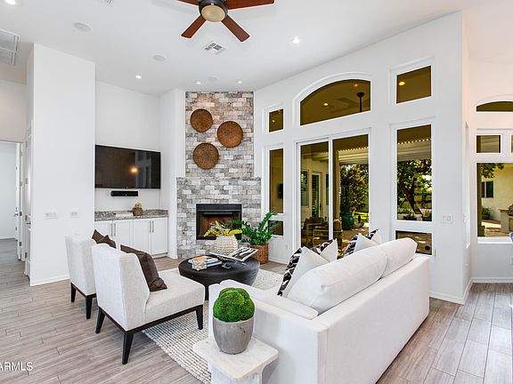 Beautiful custom built 4 bed, 3 bath home in the highly sought-after Arcadia Osborn neighborhood. This 2,625 sqft residence features a split floorplan, formal dining room, and a versatile flex space for a home office or family room. Tile floors flow throughout, while the well-appointed kitchen opens to a living room anchored by a fireplace. Step outside to an expansive covered patio with fireplace, a spa, lush landscaping, and built-in BBQ, perfect for entertaining. Two master suites, each with direct patio access, provide ideal space for guests or in-laws, while additional bedrooms offer flexibility. Complete with a 2 car detached garage, this home blends thoughtful design, modern comfort, and the ideal Arcadia lifestyle, just minutes from top-rated schools, Arcadia hot spots, and more!