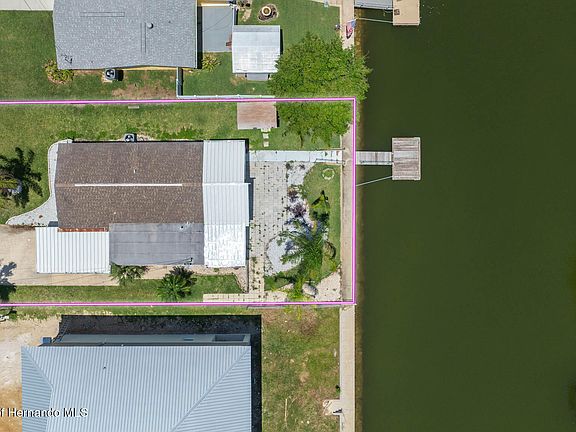 Situated on one of the higher elevation streets in Hernando Beach, this property offers peace of mind and privacy on a quiet canal with 60 feet of concrete seawall, a floating dock, and direct access to the Gulf—ideal for boaters and water lovers.