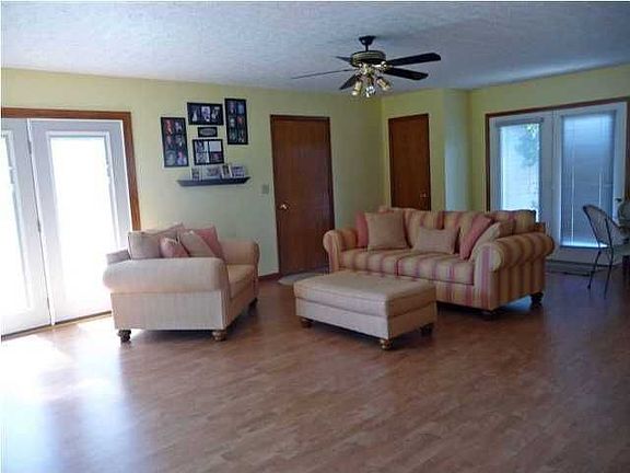 Searching for a well kept country home on acreage and conveniently located with all city utilities? Your search is over. This open floor plan features a spacious and bright sun room open to the kitchen and living room. There is a living room with a gas fireplace, a large eat-in kitchen with appliances, a bath and two bedrooms on main floor. The upstairs has 2 additional bedrooms. There is a finished game area, and storage in the basement. The spacious two-car garage has a storage closet and cabinets. Part of the backyard and patio area is fenced. There is a small barn or storage shed and pond on the property. Additional acreage available next to and in back of property. Seller will survey.
