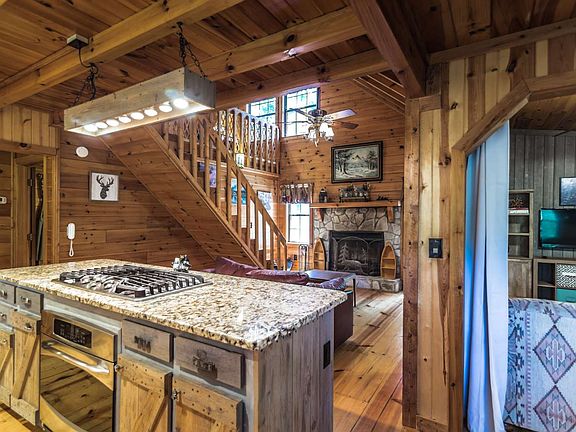 BRING YOUR FISHING POLE and enjoy this 2/2 cabin on the private setting of 8 acre LAKE WHITEPATH. This FURNISHED log home features 2 bedrooms. 2 baths, loft with an open floor plan, island granite counter top, stainless steel appliances, wood burning fireplace and a screen deck on both front and back. Outside there is a fire pit area near the lake to relax while taking in the beauty of the lake. Centrally located between Blue Ridge and Ellijay. If you are into wine you also have your own 4 rows of grapes to enjoy. This cabin is great for a rental, second home or your very own mountain paradise for full time living.