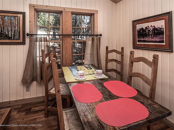 This cute, fully furnished cabin speaks Ruidoso and is so convenient to Midtown, parks, and Grindstone Lake. Unique features include a heated concrete driveway apron, large covered front deck, river rock fireplace and sleeping lofts in both bedrooms. The large approx. 1/3 acre lot offers plenty of room to play. Great property for a vacation home or as nightly rental income. Come and take a look!