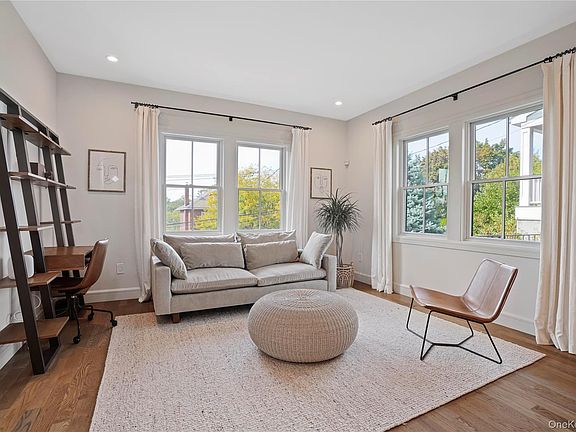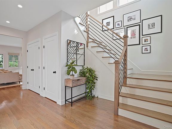 Enjoy contemporary living in historic Pelham with this nearly-new (2020), impeccably-maintained home. Impossible-to-find open floor plan flows seamlessly from the airy foyer into a living and dining area, fantastic kitchen, and family space with glass fireplace and sliding door to bluestone patio and yard. At the heart of it all, an inviting kitchen island with quartz counter draws family and friends together with seating on two sides. Brand new kitchen appliances include Bosch refrigerator, dishwasher, and induction range. Second floor master bedroom with luxurious bath plus three additional generously-sized bedrooms, hall bath, and custom closets throughout. Over 2000 square feet plus an additional 800 square feet in walk-out basement with nine-foot ceilings, huge family rec space, laundry room with LG front-loading washer and dryer, and mudroom. Built to be eco-friendly, this home has an electric car charger, is spray foam insulated, and features a high-efficiency, low-cost, electric HVAC system with ERV (energy recovery ventilator) designed for both comfort and climate friendliness. Situated in the heart of Pelham, within easy walk of Pelham Metro-North train station, new (2023) Hutchinson Elementary School, and downtown shops and restaurants.