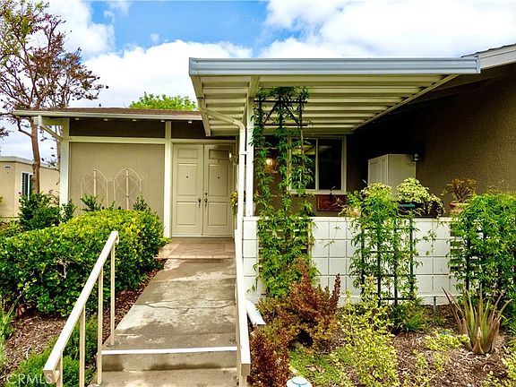 Highly desirable corner Valencia unit with no one above or below in the beautiful senior community of Laguna Woods. Placed in a serene setting with mature trees. This is a single-level home that has been very well maintained, it boasts 2 bedrooms and 1 bath. The bath has been remodeled with a beautiful granite counter, custom tiled shower, and Kohler fixtures. There is a side-by-side washer and dryer with an overhead cabinet. One of the bedrooms has a lighted built-in cabinet with glass shelves, perfect for an office. Both bedrooms have laminate wood floors. There is plenty of light in this home with vaulted ceilings in the living room, Hunter Douglas window roller shades, and a ceiling fan/light. The kitchen is charming with a tiled floor and newer appliances, plus plenty of counter space. This home also has a sunny atrium area adjacent to the dining and living room. There is forced air cooling and heating in this unit which is a major plus! As an added bonus there is a covered patio that opens up to enjoy the surrounding outdoors. The parking carport for this unit is in very close proximity. This community is renowned for its beauty as well as for the bevy of activities that are included!
