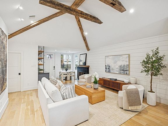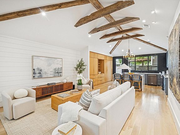 This impeccably renovated 2-bedroom, 2-bathroom home (2022) offers high-end design, stunning architectural details, and effortless indoor-outdoor living. Vaulted ceilings with exposed beams and wide-plank oak floors set the tone for the open-concept living and kitchen space—anchored by a dramatic black tile backsplash, quartz countertops, white oak cabinetry, and a built-in Thermador fridge & freezer. The primary suite is a true sanctuary, featuring a bold black-paneled ceiling, soft neutral finishes, and a spa-inspired bath. Step outside to your own private retreat—complete with a plunge pool, custom outdoor kitchen with Big Green Egg, lush greenery, completely turfed yard, built-in lounge seating, & an open-air shower. The detached garage apartment offers 775 sq ft of flexible living space with 1 bedroom, 1 bathroom, a kitchenette, dining area, and living room—perfect for guests, income potential, or work-from-home needs. This Montrose gem offers the best of Houston living.