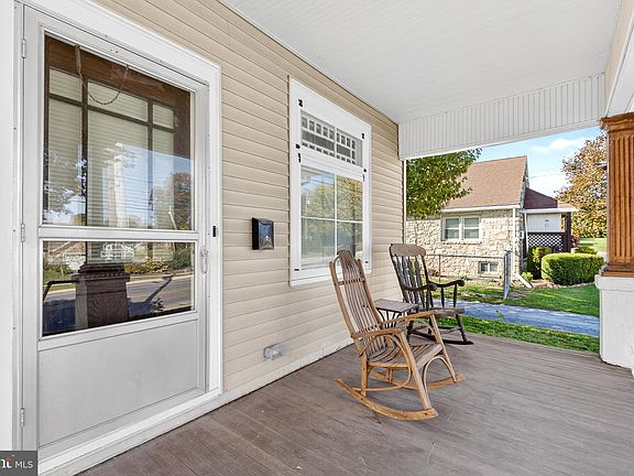 Charming and updated single-story home in the heart of New Holland Borough, combining classic character with modern comforts. Built in 1918, this 2-bedroom, 1-bath residence offers an inviting living space. Enjoy the welcoming covered front porch, beautiful wood floors, and detailed woodwork with built-in features that add timeless elegance. Modern updates include majority replacement of windows, durable vinyl siding, and a newer efficient oil hot water baseboard boiler, ensuring comfort and energy savings. A heated bonus room at the back, previously an enclosed porch, adds versatile extra space for relaxing or working from home. The detached barn/garage/workshop provides ample off-street parking and plenty of storage or hobby space. Located close to the community park, pool, and downtown amenities, this home perfectly blends historic charm with today’s conveniences, ideal for buyers seeking a cozy and stylish place to call home.