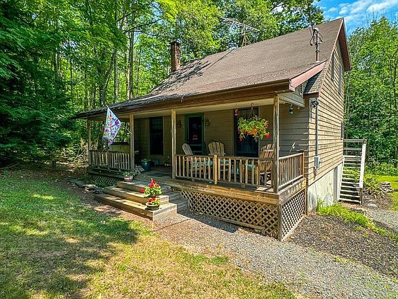 This peaceful, tranquil retreat is being offered for the first time ever! Solidly built by a master craftsman and lovingly maintained, this fantastic getaway with a contemporary flair and a cabin-like feel is unassuming and private. Enjoy your coffee or stargaze on the covered front porch on one of the most sparsely populated country roads, where wildlife abounds. The first level features a living area, eat-in kitchen and half bath. Sliders lead to a deck off of the kitchen for bar-b-que convenience and get-togethers. The 2nd floor features an overlook to the first floor, with 2 bedrooms featuring cedar closets and a full bath. Full, dry basement with a walk-out. Gorgeous wood flooring throughout. Offered furnished except a few items. Outdoor shed includes craftsman 42 ride-on mower with trailer and hand mower, plus a lot of other goodies. This home is conveniently located a few miles from Windham restaurants, hiking, golf, skiing, horseback riding, walking path and just a short drive to Hunter Mountain and some of the local venues.