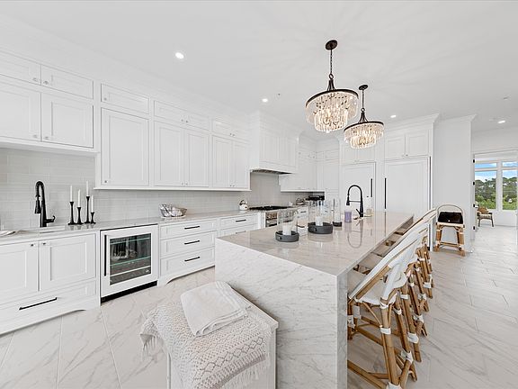 The heart of this home features a chef's dream kitchen fully outfitted with a 48" commercial range, dual full-size refrigerators, wine cooler, dual dishwashers, commercial-grade ice maker, microwave drawer, and custom inset cabinetry. Every detail speaks of quality and thoughtful design.