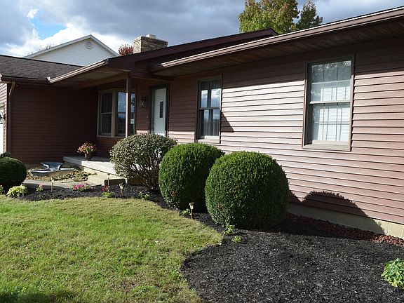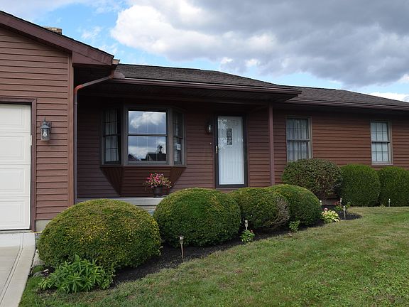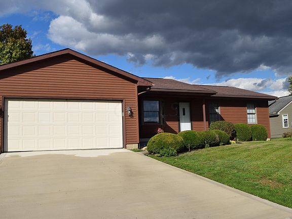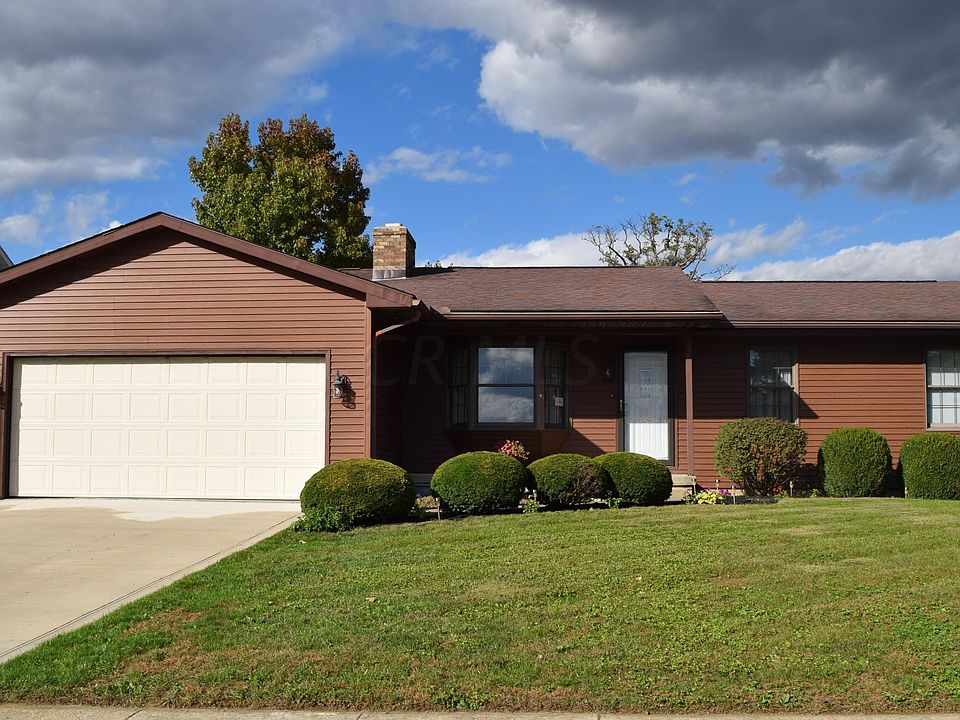 Move In Ready! Three bedroom, 1 1/2 bath ranch. So many updates: New concrete driveway, New CA, New Furnace, New Carpet, Freshly painted throughout. Nice yard, deck, patio with sun shade. Full basement and 2 car garage. Kitchen with eating bar, dining room with vaulted ceiling. A must see! Seller is State of Ohio Licensed Realtor.