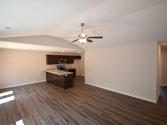 New construction home! Open floor plan, vaulted ceiling, breakfast bar, stainless steel appliances, vinyl plank flooring throughout, master suite with a walk-in shower, large lot with a elevated deck overlooking the private back yard, attached garage, no city taxes! Close to shopping, easy access to downtown, and more.