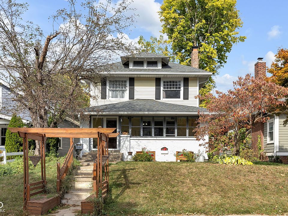 Christmas Came Early in Meridian-Kessler // This home is full of space, character, and potential wrapped up with a bow and waiting for someone ready to make it shine. Nestled in one of Indy's most beloved neighborhoods, this two story home with an attic and basement blends the warmth of original craftsmanship with the promise of a great investment on a double lot. Step through the enclosed front porch into a living room where wood-beam ceilings, hardwood floors, and a brick fireplace set the tone. A formal dining room and bright, open kitchen with a large island make for easy gatherings, while an additional living/media room adds versatility. Additional living/dining space towards the back of the home - complete with vaulted ceilings and access to the lush backyard - offers room to spread out. Upstairs, you'll find four bedrooms and two full baths, including a large primary suite with an en-suite bath and walk-in closet. The walk-up attic provides excellent storage, and the basement includes a full bath, a storage area, and a finishable room for future expansion. The detached garage currently serves as a dream workshop. Appraisal and inspection reports available upon request. Home to be sold as-is.