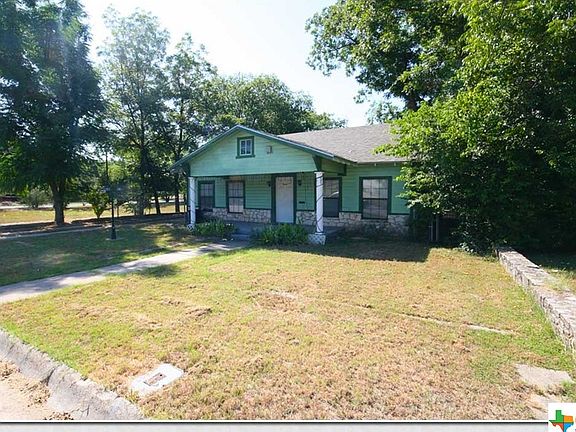 Located just a block from Historic Downtown Lampasas is this two bedroom, one bath frame with original wood floors in the living and bedroom. The lot is large with fenced back yard and large trees. Back patio is covered and there is a storage room adjacent to the patio. At the end of the driveway in the back yard area is a one car garage.